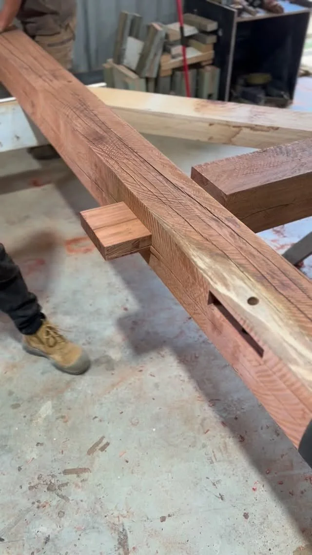 Traditional timber framed king post truss, engineered and handcrafted in Bermagui