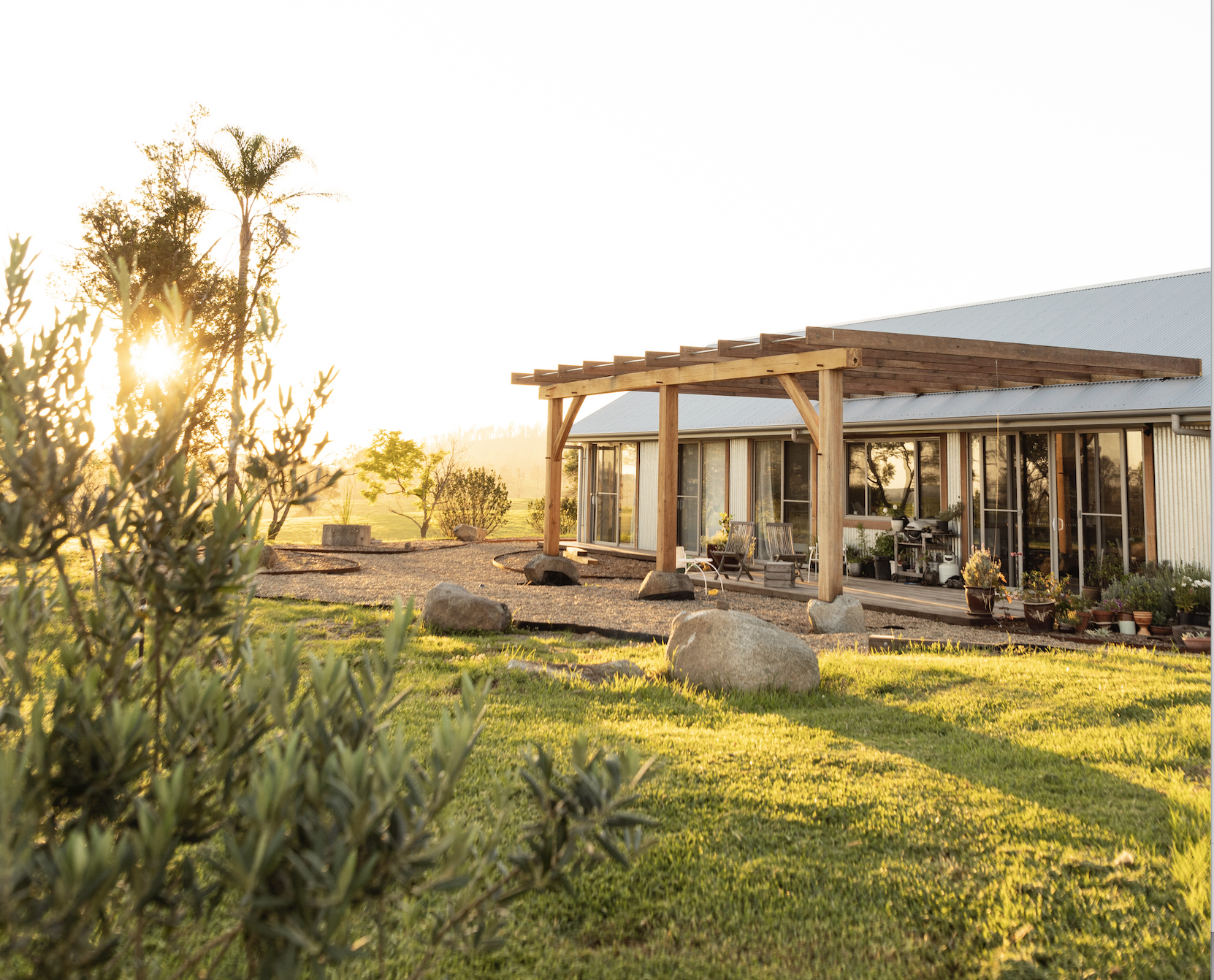 Traditional post and beam arbor scribed onto stone foundations, supporting ironbark rafters with galvanised steel rods. Installed as an addition to a recently finished passive house, this arbor is designed to support deciduous vines providing shade to the deck and north face of the building during summer whilst still allowing the sun to warm the building in winter months.